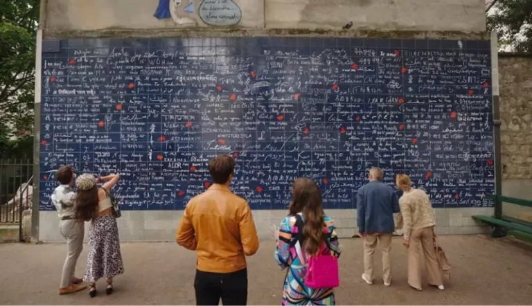 The last stop for Emily and Gabriel’s ocular tour? The Wall of Love (aka Le Mur des Je t’aime among locals), which has over 300 translations of “I love you” in different languages and dialects. This art installation was the brainchild of calligraphist Frédéric Baron, who worked with muralist Claire Kito to engrave the phrases on tiles made of lava.