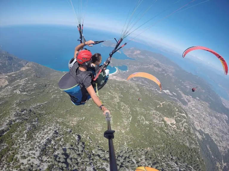Free falling over a Blue Flags Beach in Oludeniz, Turkey