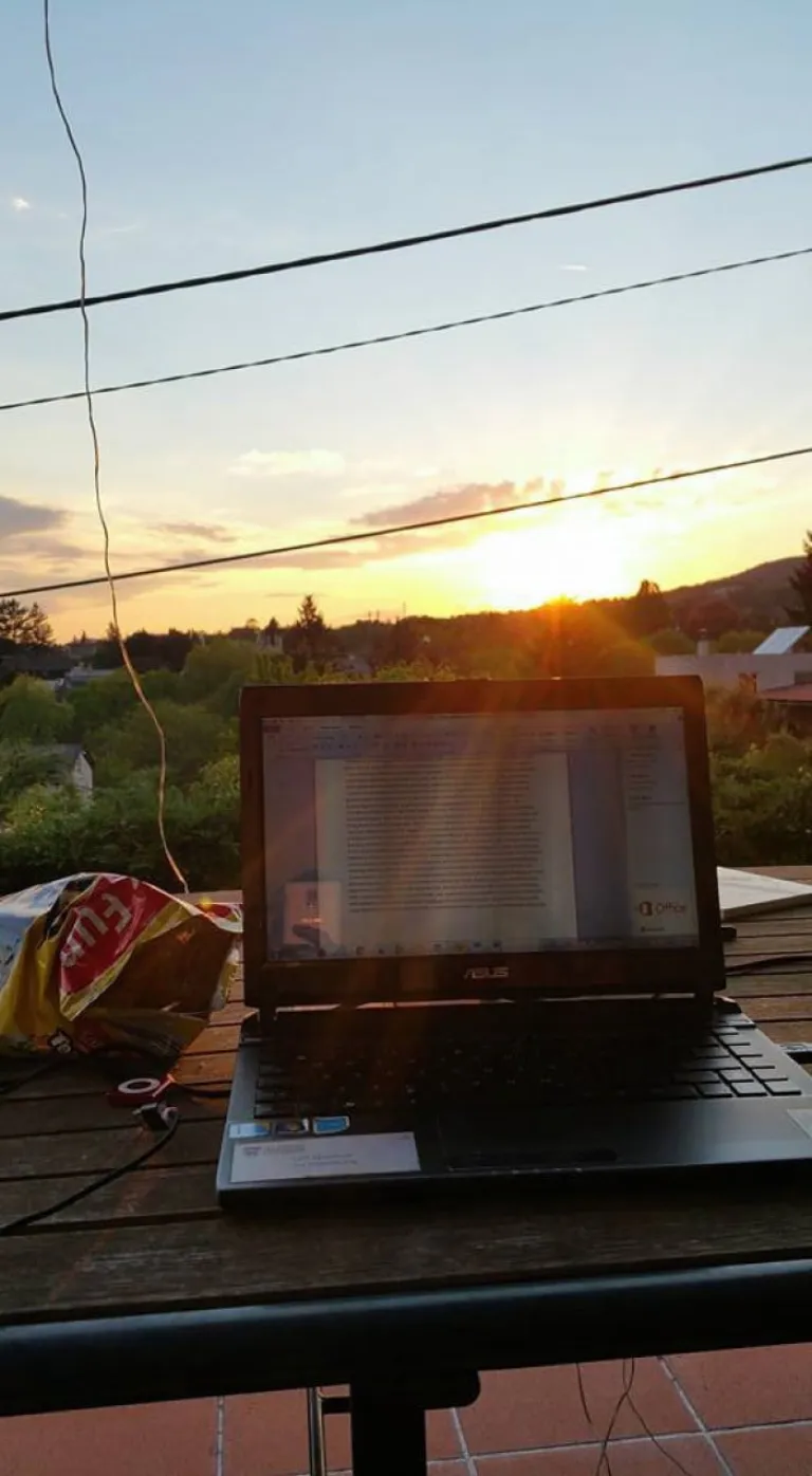 Doing my assignment with such a picturesque sunset view, hoping that inspiration and determination will literally shine through