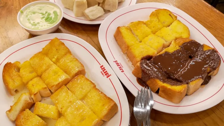 One of the pioneer cafes in Bangkok, Mont Nom Sod has been offering pocket-friendly snacks and drinks for over 50 years. The shop is famous for its steamed bread with custard dip and toasted buttered bread with various toppings.