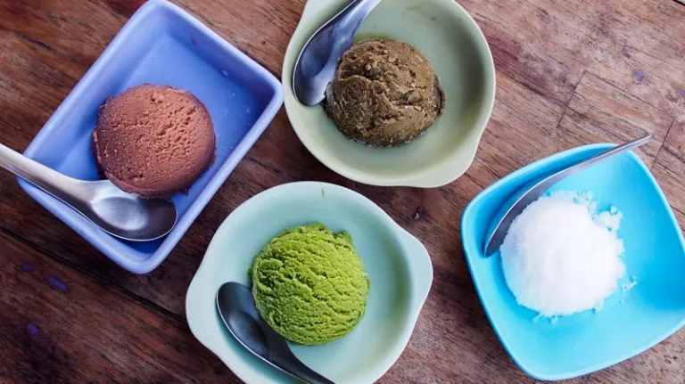 The ice cream here is made of organic produce from the farm of the shop owners. They also pair it with delicious Thai desserts. The shop also offers some simple savoury dishes like salad and chicken rice.