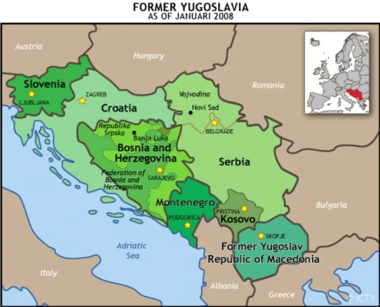 Meet the six different republics of the region of former Yugoslavia: Bosnia and Herzegovina, Croatia, Macedonia, Montenegro, Serbia (including the region of Kosovo) and Slovenia.