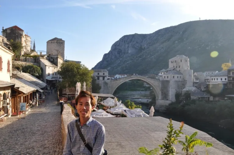 Mostar Old Bridge in the background.