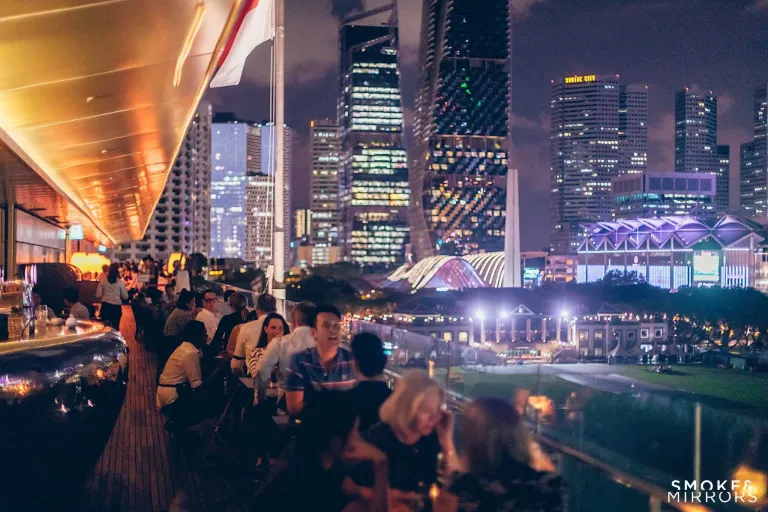 When the National Gallery Singapore closes its doors, it’s time to move up to Smoke and Mirrors. That’s right; right above the grand National Gallery, you’ll find one of the chic-est and sleekest cocktail bars in Singapore. Although Smoke and Mirrors is just six stories above ground, it boasts an expansive view of the Padang Area, making it the top choice for visitors who want to get close to the racecars as they speed right across them.