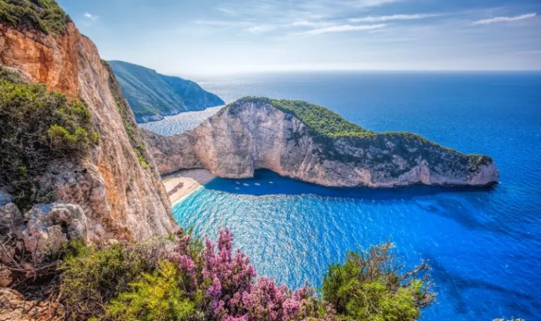Aside from horticultural splendour, Zákynthos is known for Navagio Beach. Often called “Shipwreck Beach” or “Smuggler’s Cove.” Next to the brilliant blue of the water, you will discover a huge, rusting marooned vessel on the pebbled shore. Just don’t explore this area barefoot, as the pebbles are sharp enough to hurt your feet!