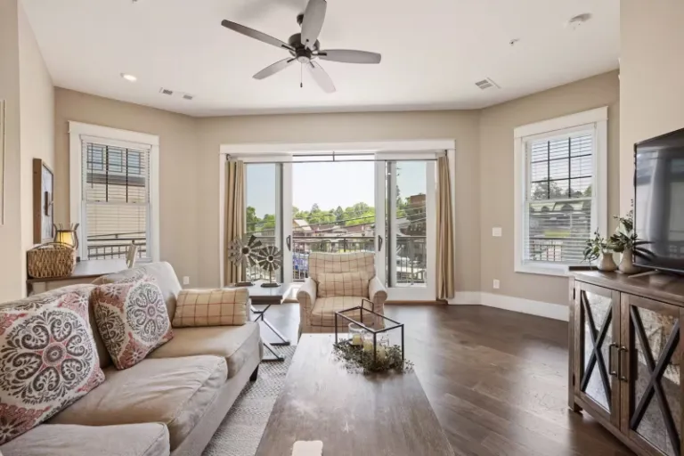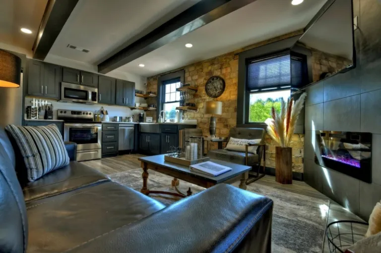 This is a stunning condo that’s nestled right across the across from the Blue Ridge Scenic Railroad. Thus, a short walk will you to some of the major attractions of the city. The space features an open-concept arrangement, complete with top-notch amenities including central heating+AC and multiple Smart TV’s.