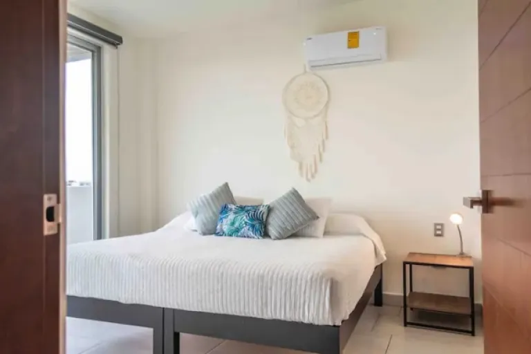 It includes a fully equipped kitchen, living/dining room, high-speed WiFi, and A/C. An excellent Airbnb in Cancun for modern luxury.