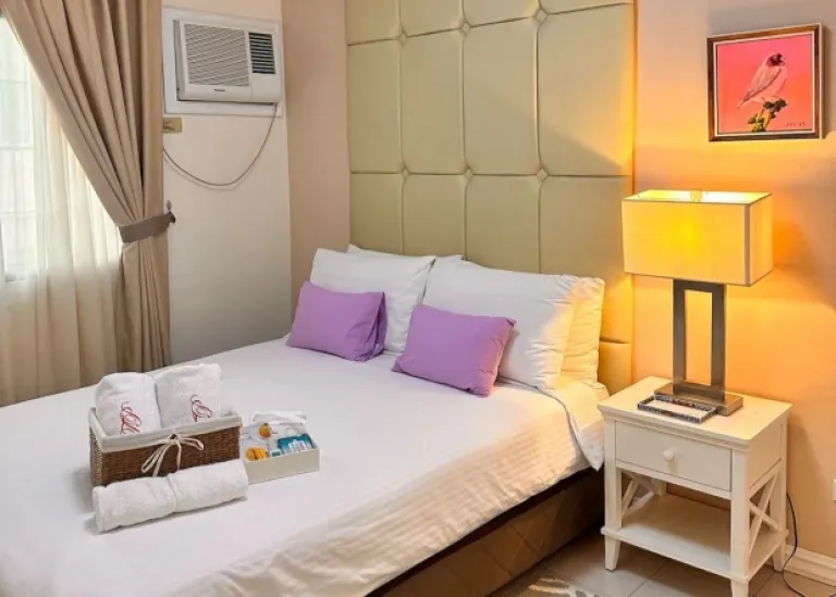 The condo features two cozy bedrooms, a fully equipped kitchen, and a comfortable living area with large windows overlooking the cityscape. Guests can enjoy the building’s amenities, including a swimming pool and gym. You’ll find Abreeza Mall and People’s Park, just a short walk away, perfect for family outings.
