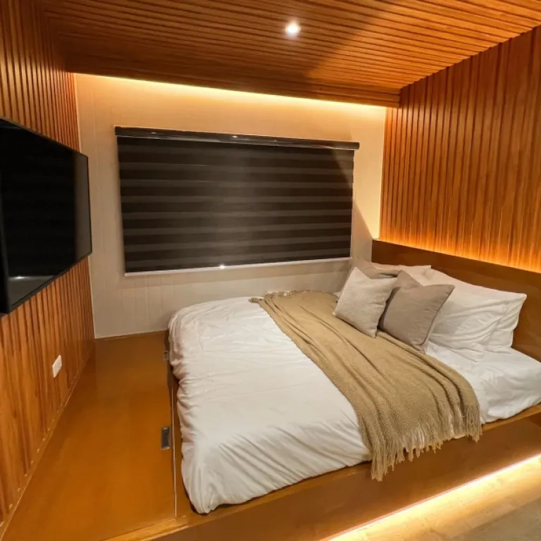 This luxurious yet comfy tiny house offers one bedroom, a spacious living room, and a fully equipped kitchen, inclusive of a stunning outdoor hot tub. It’s located in a quiet neighborhood but close to popular attractions like People’s Park and Davao Museum, providing a great balance of tranquility and accessibility. One of the best Airbnb options in Davao City for small families.