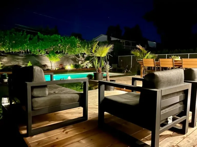 Escape to luxury with this spacious Airbnb in Montreal, Canada, featuring a pristine outdoor pool, dining area, and cozy seating. Culinary enthusiasts will appreciate the fully equipped chef’s kitchen, while built-in speakers and enchanting night illumination set the perfect ambiance for relaxation. Conveniently situated between the airport and downtown Montreal, you’ll find parks, tennis courts, and a variety of restaurants just moments away, making it an ideal family retreat.