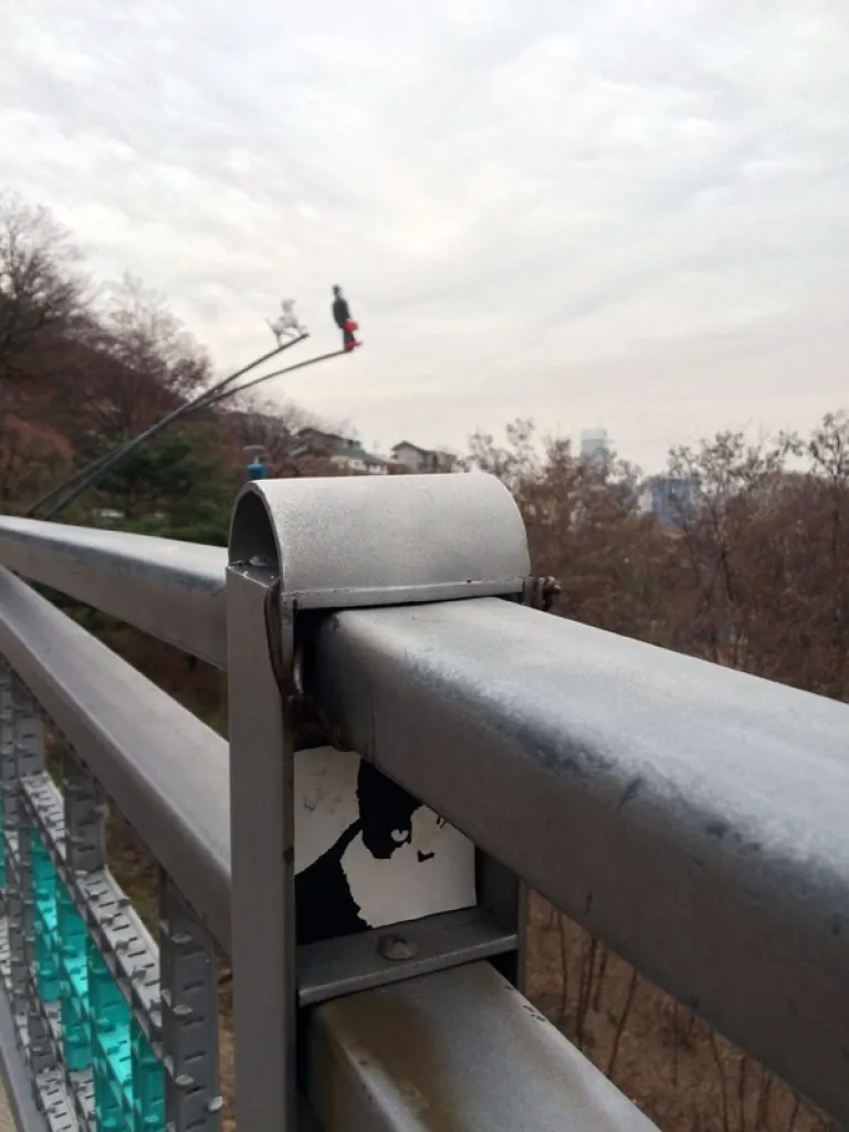 Look out for small bits of art! There’s a bunch of metal sculptures along Naksan-gil as well as the slightly offbeat Man and Dog in the background, but I kinda love the little hidden kitties in the railing