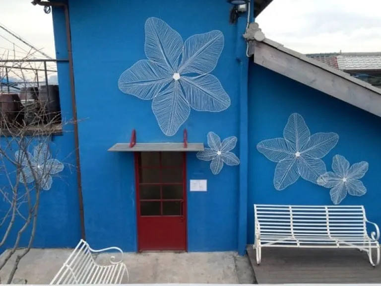 - Look for Naksan-gil on your left – this sloping street will lead you up to Naksan Park. It’s a very steep sloping street and you should see the green hills artwork, from there just follow the artworks
