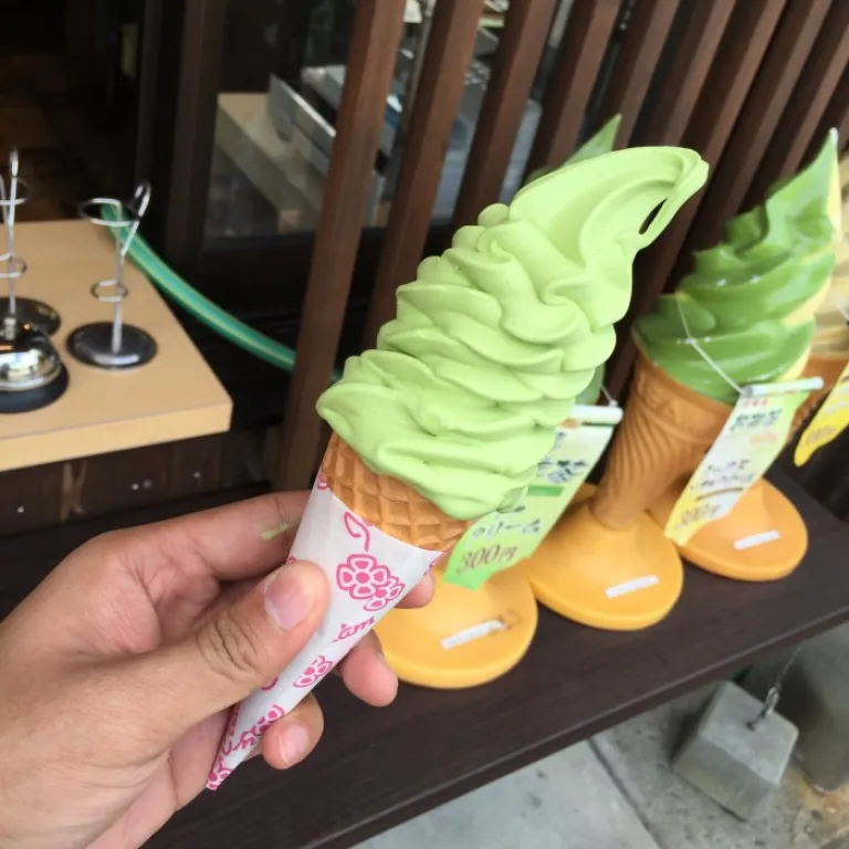 Matcha Soymilk sundae near Arashiyama Temple in Kyoto which costs ¥300