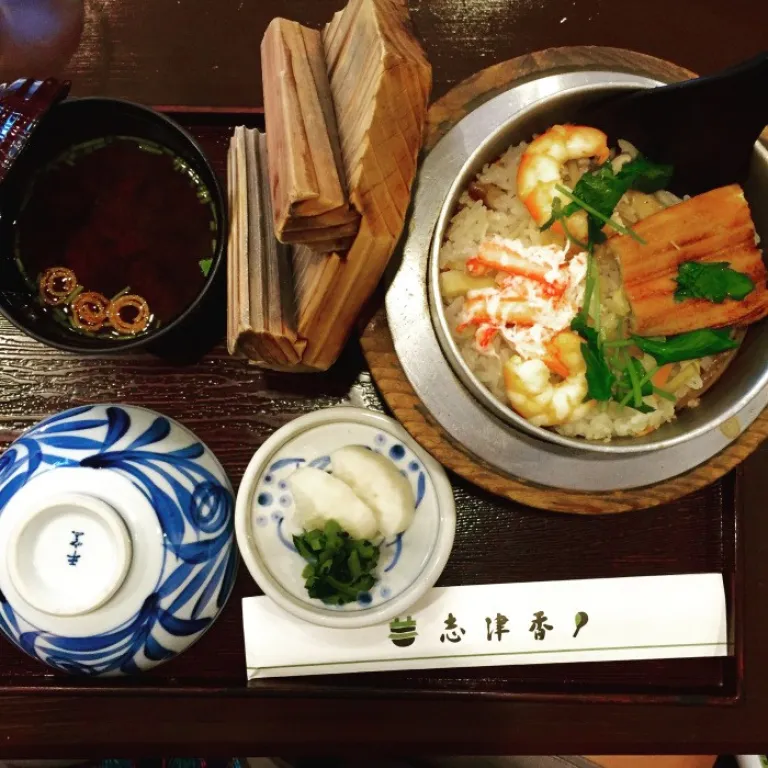 Waited in line for about half an hour for this. It may take longer during peak lunch and dinner hours. The Kamameshi Shizuka restaurant is well-known throughout the Nara Region for its excellent Nara special hot pot. This consists of shrimp, crab, conger eel, spring chicken, bamboo shoots, burdocks and carrots.