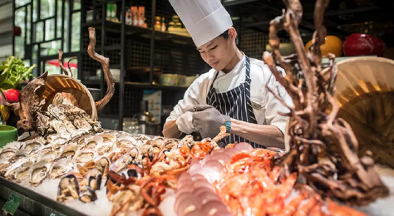 The Shangri-La brand has always been recognised as a hallmark of excellence and Shangri-La Singapore’s buffet restaurant, The Line, keeps to the standard. A finalist for Best Buffet Restaurant in the Chope Diners’ Choice Awards 2017, The Line brings a theatrical element to its mouth-watering buffet spread.