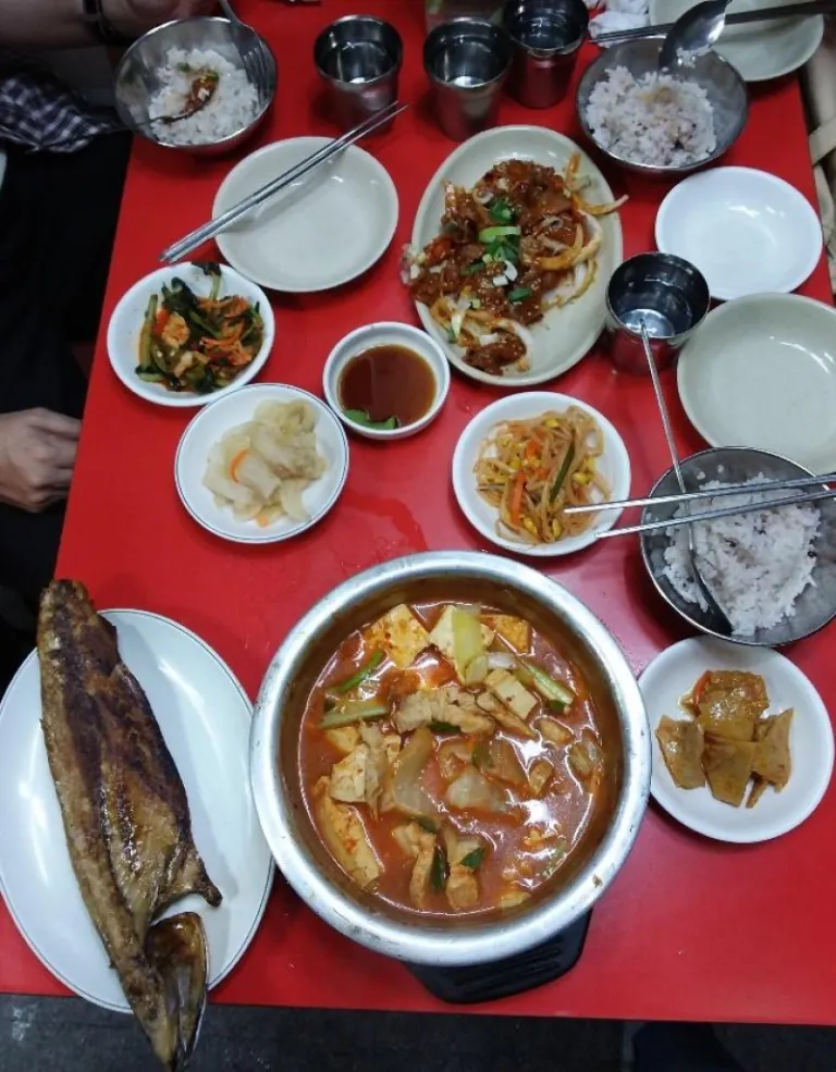The name of this restaurant within Pyeonghwa Market is well-known due to its 30 year-long history. Here at Kalchi, you can indulge in tantalisingly spicy kimchi soup that is a bang for your buck. At KRW12,000 (~S$14.70), a large portion of soup comes with a generous serving of ingredients including tofu, pork, leeks and of course, kimchi!