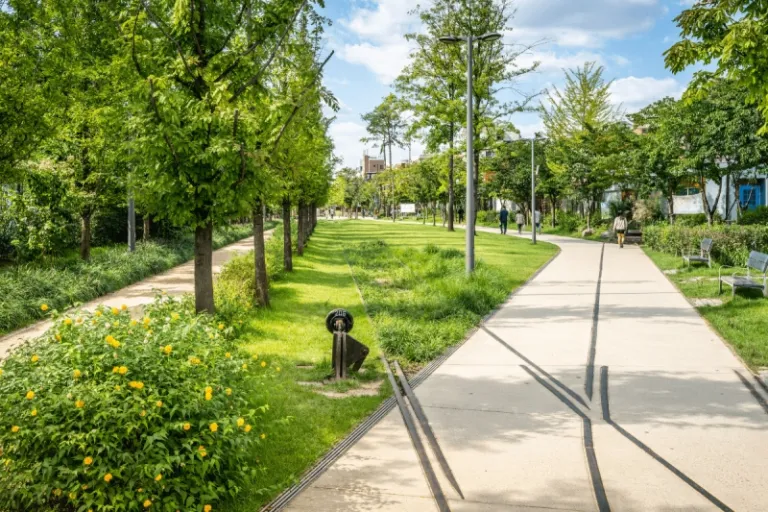 Gyeongui Line Forest Park is an oasis of calm amidst the bustling city that surrounds it. Built on the site of the former Gyeongui railway line, this park is one of the more relaxing places to visit in Seoul for free. It’s a popular green space for locals and is made even prettier by the presence of reflecting pools, art installations, small canals, and miniature gardens.