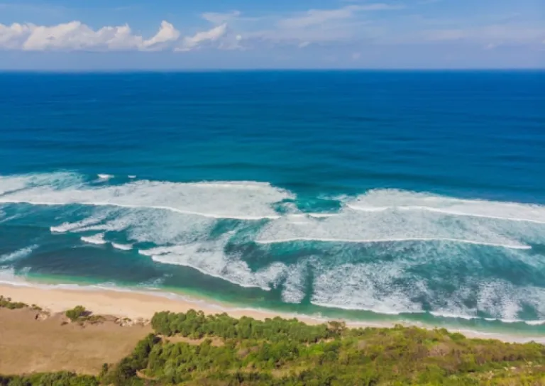 Known for its unique location tucked beneath towering cliffs and accessible only through narrow passages, Suluban Beach in Uluwatu provides an adventurous outing for those looking to make the most of Bali’s epic waves. Once you’ve navigated your way down, you’re greeted by the stunning sight of crystal-clear blue waters and a pristine stretch of sand.