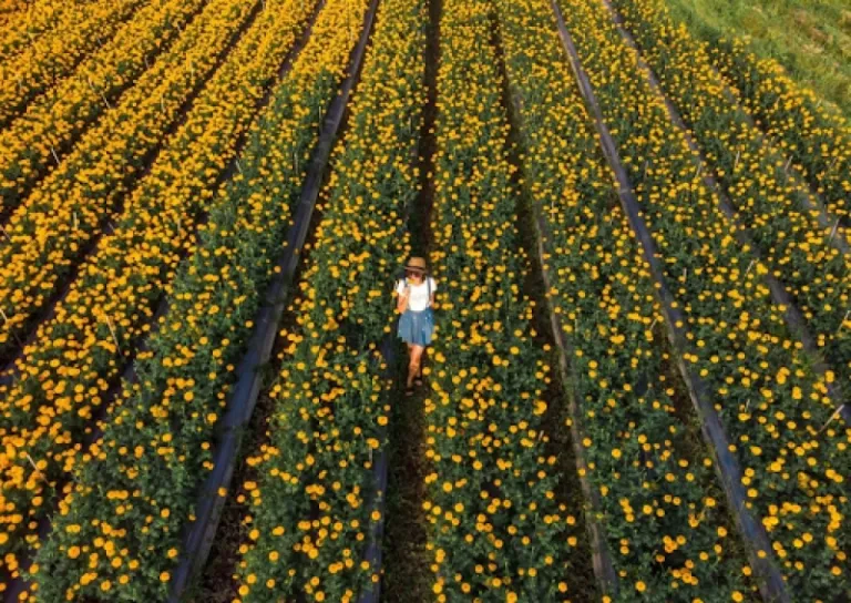 The Desa Temukus marigold garden in Badung is a picturesque spot that has become a favourite for photographers, nature lovers, and those seeking a peaceful retreat. It is a stunning visual feast with its vast fields of bright orange and yellow marigolds.