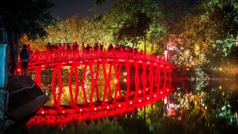 Located in the centre of Hanoi, Hoan Kiem Lake attracts both locals and tourists who want to get away from the hustle and bustle of the city. Also called the Lake of the Returned Sword, legend has it that in the 15th century, Emperor Le Loi was sent a magical sword by Heaven to drive the Chinese away from Vietnam. After he had won the war, a giant golden turtle grabbed the sword and disappeared into the depths of the lake to return it to its divine owners.