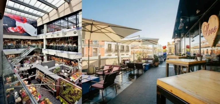 The first floor comprises a kaleidoscopic array of tapas bars and food stands offering Spanish bites as well as Greek, Asian, or other international cuisines. The second floor especially, is the cherry on top of the icing because it houses a restaurant and rooftop bar with spectacular views of Madrid’s cityscape. You could practically stay here all day!