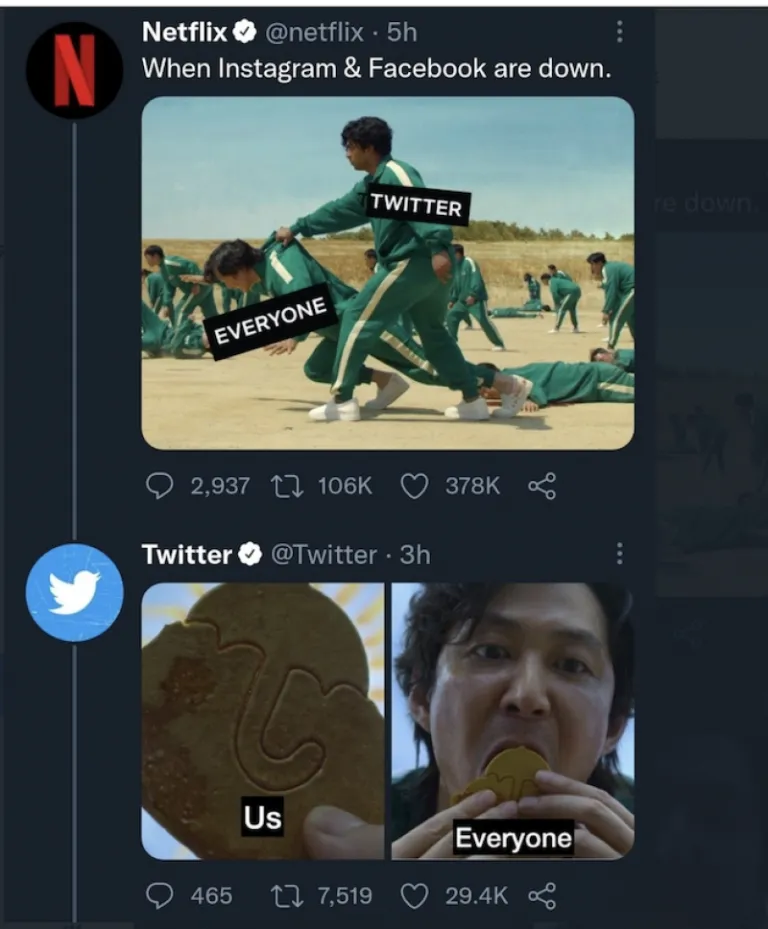 While Facebook, Instagram, and WhatsApp were down, every other business took that as a sign to say ‘hi’… on Twitter