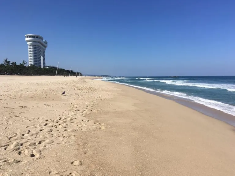 Once there, make your way to Gyeongpo Beach, which is your first stop. Gyeongpo beach is one of the top beaches in Gangwon. It lies in a unique geographical location between the East Sea and Gyeongpo Lake and is famous for its fine white sand. The waters here are shallow, making it a good place to frolic about.