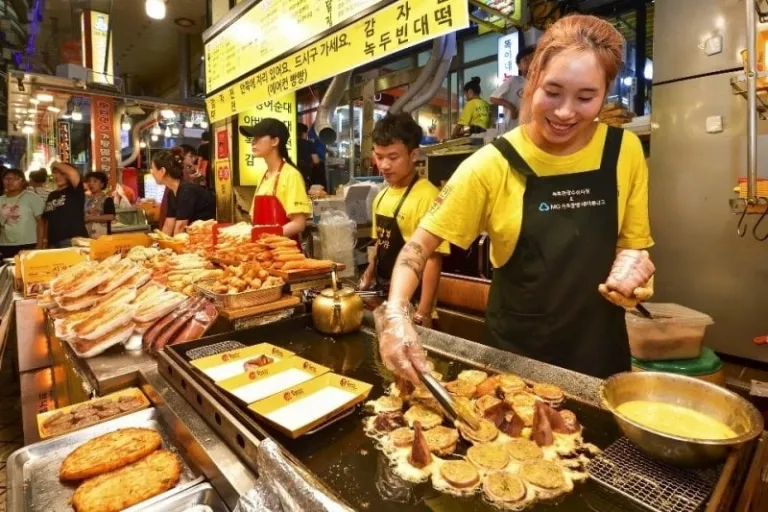 Finally, if you’re still feeling peckish after all that eating, head to Gangneung Jungang Market where you will find plenty of yummy snacks, including Dakgangjeong, yummy Korean fried chicken pieces served with a savory glaze.