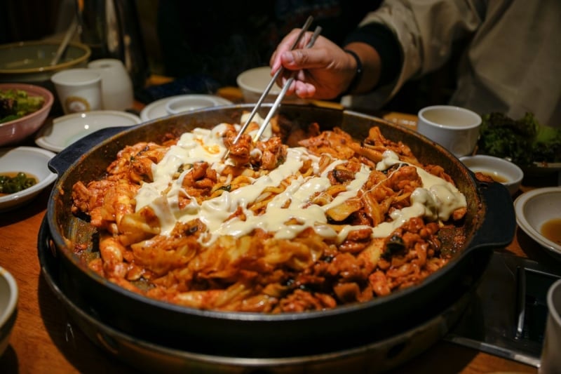 In the evening, head to Chuncheon Myeongdong Dakgalbi Street, one of the city’s most famous dining areas. The scent of sizzling stir-fried chicken fills the air as cooks prepare dakgalbi on large iron skillets at the table. Made with marinated chicken, cabbage, rice cakes, and a spicy yet savoury sauce, it is a dish best enjoyed family-style. Many restaurants also offer non-spicy versions for younger diners, ensuring that everyone can enjoy this comforting local speciality before retreating to your accommodation for a restful night.