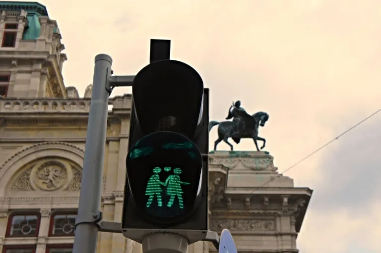 Take a walk along the cafe-lined streets of Vienna and enjoy the classic architecture of this city. You might see the illumination of a same-sex couple illustrated on the city’s traffic lights.