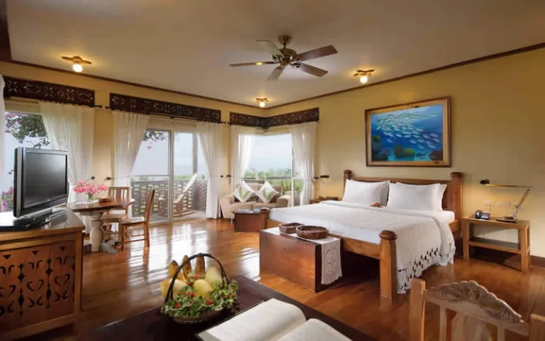 If you do participate in those activities, don’t forget to head to the resort’s traditional thatch-roofed restaurant after for a scrumptious meal and majestic panoramic view of the island and Cebu. Then retreat to your spacious villa and unwind for the night by enjoying the sea-salt breeze from your private veranda.