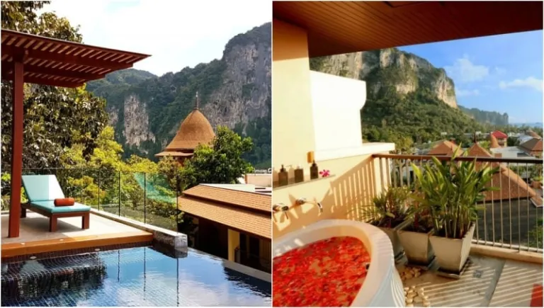 Feel on top of the world (literally) at Aonang Cliff Beach Resort, a 4-star beach resort perched on the majestic limestone cliffs of Aonang, and facing the beautiful Andaman Sea. Not only is it incredibly scenic here, the atmosphere’s also calm and laid-back: perfect for a dreamy getaway. Plus Phuket’s beaches can get crowded, but that’s not a problem here, where only hotel guests have access to the resort’s private beach. Take a dip in the infinity pool and pop by the bar for a piña colada. Or, order authentic Thai to your door and enjoy your meal from the bathtub sitting on your balcony. Either way, it feels like paradise with the love of your life by your side.