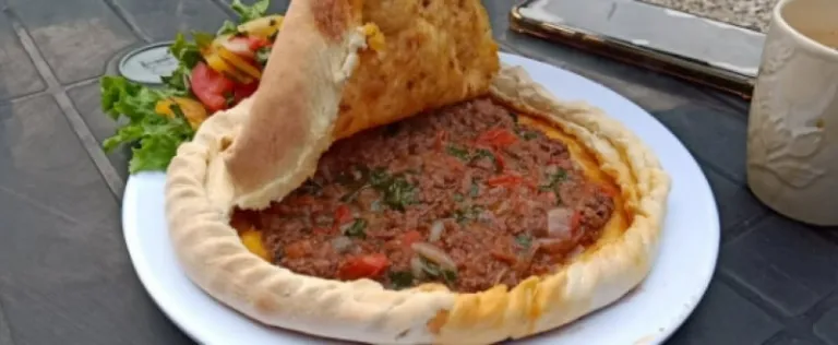 Chapshoro is a delicious savoury meal that all meat lovers can enjoy. Naan bread is stuffed with meat, seasoned vegetables, and oil. Then, the bread is sealed and baked in an oven. The result is a gorgeous, round meat dish, like a pie.