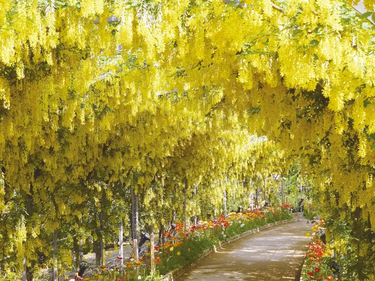 - Early to mid-May: kibana-fuji (yellow blossom wisteria)