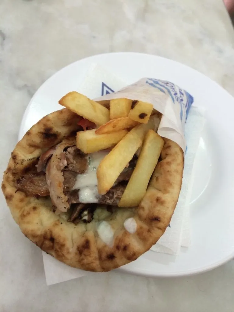 Toward the last few days in Greece, we were so tight on budget that we ate street food everyday. And one of our favourite street food is soulvaki! It is sold everywhere in town. Basically soulvaki is grilled wrap stuffed with meat, fries, tomato and mayonnaise! There are different varieties of pita with fillings such as chicken, lamb and beef, but our favourite would be gyros! It is actually very filling, and we can eat up to 3 soulvaki everyday! One soulvaki cost around EUR 2.5.