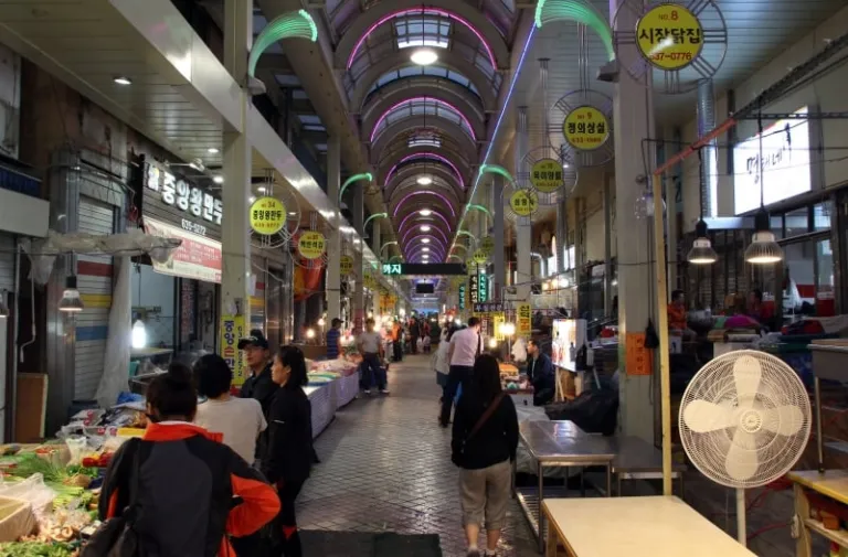 This market in Sokcho is a touristy one (as the name suggests) but you’ll still find locals doing their shopping in it. It is relatively quiet during the day, buzzing with life only at night. The store owners are friendly and the atmosphere is lively and fun. While the food section of the market is the most popular, there are also other goods sold here such as clothes and bags. Don’t worry about prices – it is generally very affordable here!