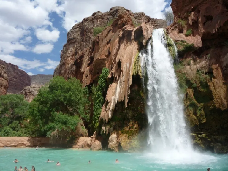 These are the two newest additions to the Havasupai Waterfalls family. It is believed that these two waterfalls were created after a flood in 2008. The Lil Navajo Falls and Rock Falls have become crowd favourites among families because you can bask and swim in the clear blue waters beneath the falls. You can even climb onto a relatively low ledge on Rock Falls to admire the crystal clear waters below you!