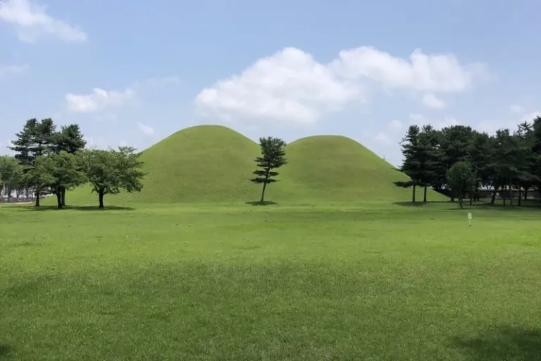 From afar, they look like voluptuous hills, but these are actually burial mounds for the imperial family and noble classes of the Silla period. Some mounds are bigger, indicating that the person buried within the mound was probably more powerful than others at a time when he/she was alive.