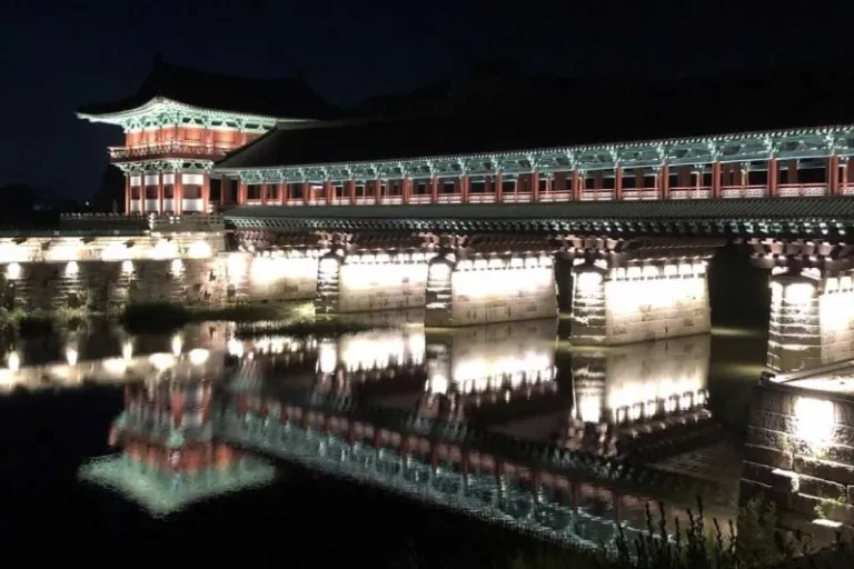 This massive vermillion bridge is the longest bridge in Korea made completely of wood. Although this is not the original bridge from the Silla Kingdom, the bridge has been constructed based on the original design of the bridge. Woljeonggyo is also known as the bridge with the best night view in Korea: in the evening, the lights shine on the vermillion lacquer to create stunning scenery.