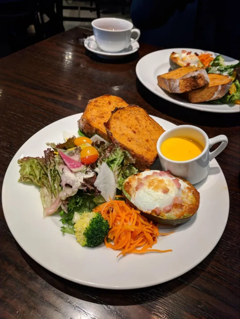 If you are looking for more of a healthy breakfast option, try Lounge 1908 in Aoyama. Between the hours of 11am to 3pm, you can order wonderful dishes such as avocado toast, salad lunch, deli plate lunch, vegetable curry and vegetable taco rice. Order a drink set and have a sip of their herb tea or champagne by the glass, and have a classy brunch in the Omotesando area.