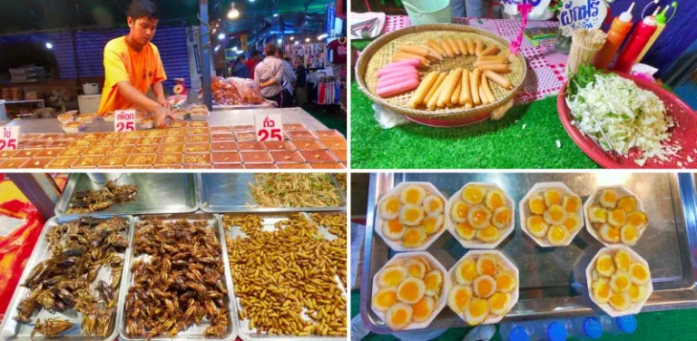 The night market sold all kinds of snacks, desserts, and local treats. I personally didn’t dare to try some of them though, like the fried insects. However, they still do sell some usual street food that you will expect to see at a Thai night market.