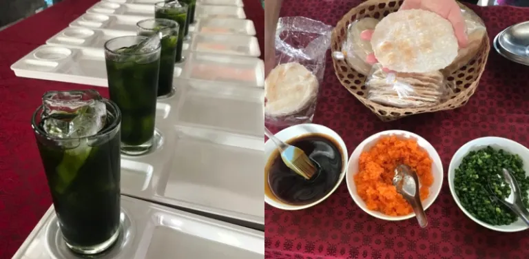 After the boat ride, we were greeted with these treats when we were back on land. This is their speciality known as the Khao Kriap Ya Na, which are rice crackers with grated coconut and carrots, and spring onions sprinkled on top. They also served us their speciality Jasmine Green Tea, which was refreshing.
