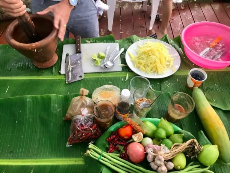 Everything was freshly made for us on the spot, and the papaya salad tasted so refreshingly good. These vegetables and fruits are planted by the locals, and they usually share the harvest with one another.