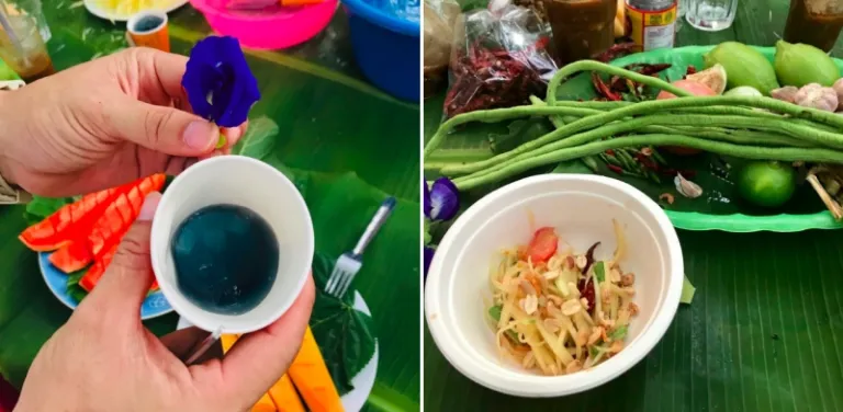 The locals really love their butterfly pea tea, and so do I. This butterfly pea flower tea is made from the infusion of its flower petals. Squeeze some lime into the tea and enjoy it like the locals do!