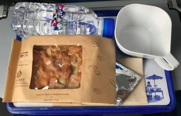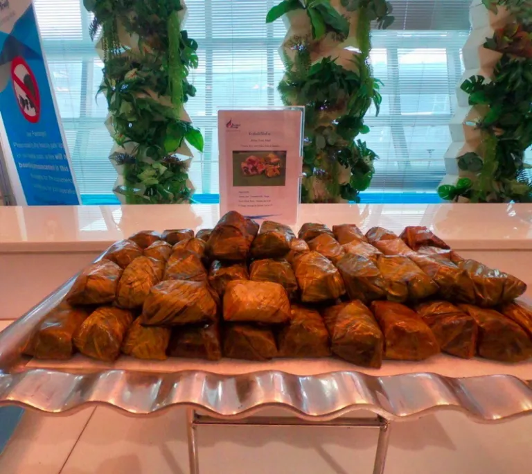 This is Bangkok Airways’ specialty, the Khao Tom Mad, which is Sticky Rice with Bean and Banana. Inside, it contains coconut milk, dried black bean, and banana. There are actually customers who attempt to consume the leaf, so if you’re there and intend to try, let it be known that the leaves are not meant to be eaten!