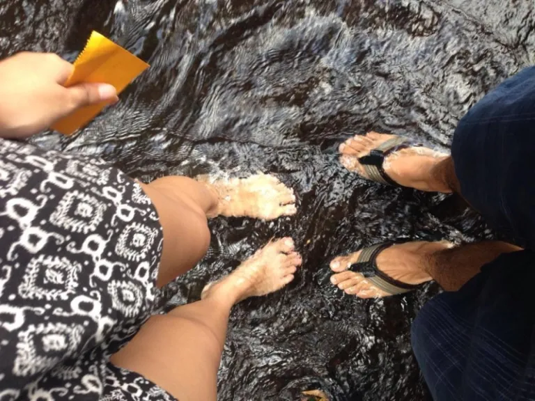 Hopping off their carabao carriage, visitors arrive at the renowned Labasin Waterfalls, where Villa Escudero provides their guests with a dining experience like no other. Imagine this: authentic Filipino dishes, kamayan style, the sound of rushing water, feet submerged in cool water – perfect, especially in the Philippine heat.
