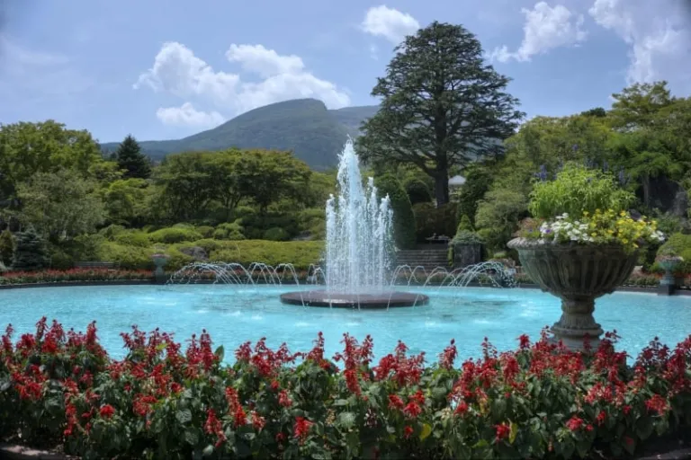 The is a French-inspired landscape park that features a magnificent fountain and a rose garden. On top of this, the park also has two different greenhouses, one housing a flower garden and the other a tropical botanical garden.