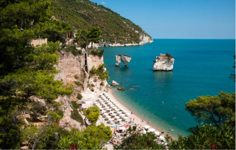 What makes Baia delle Zagare even more appealing is the limited access, as to protect the site. You can either take a boat from Mattinata or check in to either the Baia delle Zagare Hotel or the Baia dei Faraglioni Hotel, which have elevators leading down the beach. If you’d rather not check into these hotels or take a boat, you’ll have to obtain a pass from the Mattinata City Council. We recommend planning ahead, though, since they only allow 30 visitors per day.