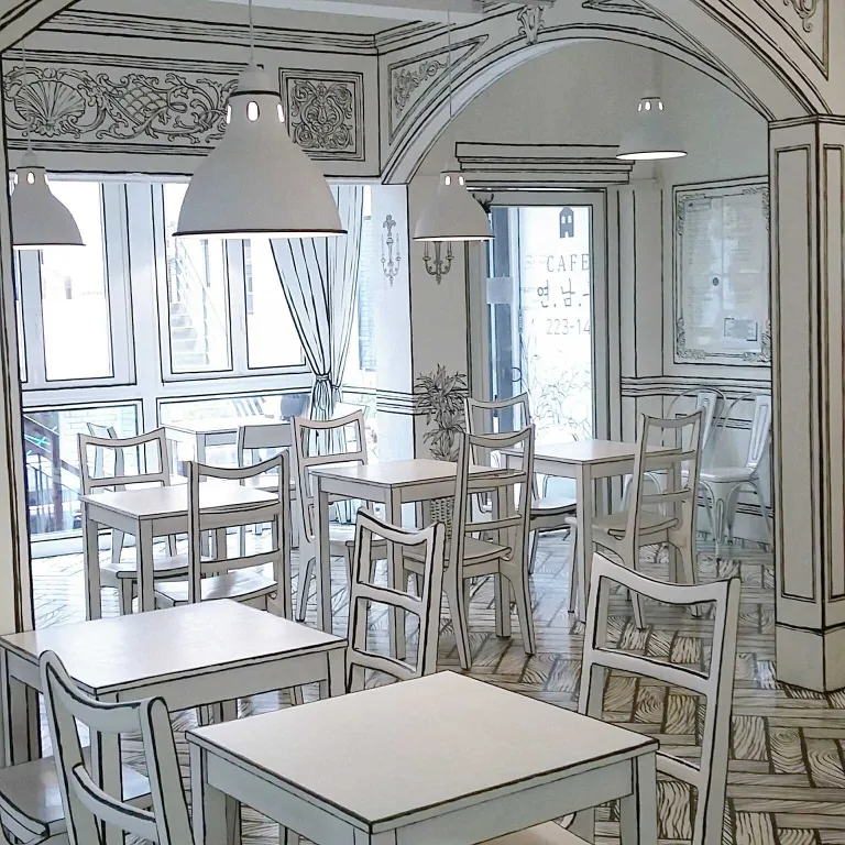 is the brainchild of one J. S. Lee, who wanted to create a cafe that would be popular among Seoul’s trendy youth. The cafe takes its inspiration from the blockbuster drama W:Two Worlds, mimicking the comic book world that the protagonist ends up in. Even if you have not watched the drama, Cafe Yeonnam-dong’s unique interior is sure to pull you in. Just be sure not to get lost within!