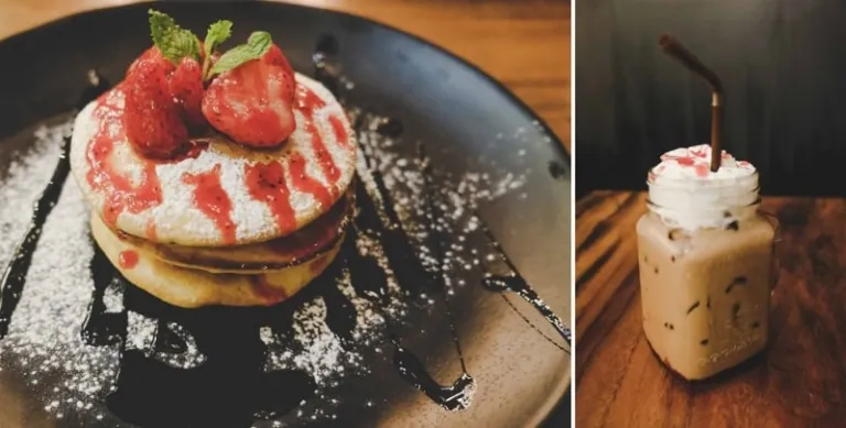 (Left) Berries Pancake; (Right) Iced Strawberry Mocha